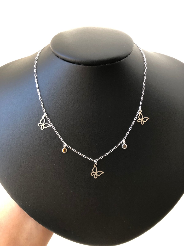 COLAR BORBOLETA PEDRAS AMARELAS