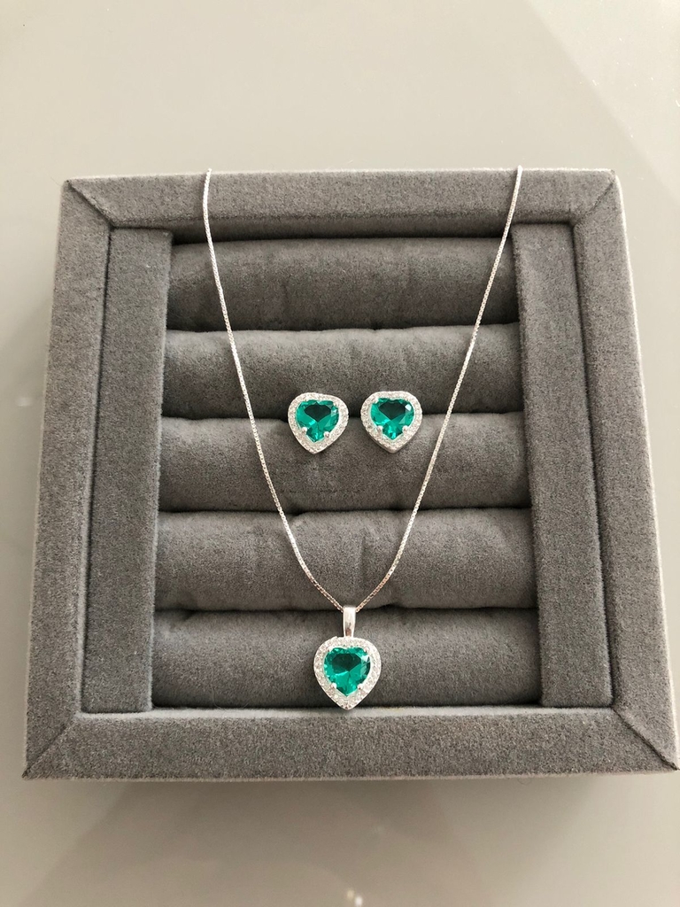 KIT CORAÇÃO VERDE CLARO ZIRCÔNIAS